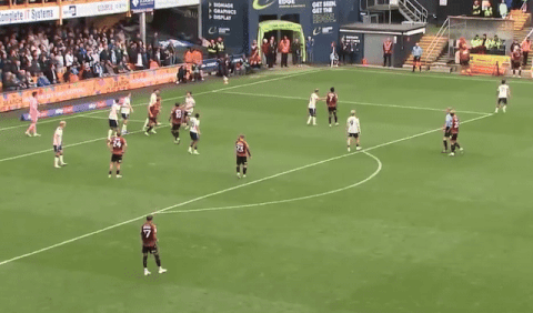 This inability to compete with Bradford was a constant pattern throughout the game. While it cost them a goal here, it was much worse in the middle third of the pitch.